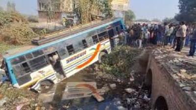 घने कोहरे में बिजनौर में अनियंत्रित होकर पलटी बस, 38 यात्री घायल