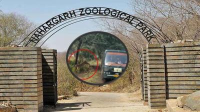 नाहरगढ़ सफारी में बड़ा हादसा टला! फंसी गाड़ी के पास आधे घंटे तक घूमता रहा बाघ