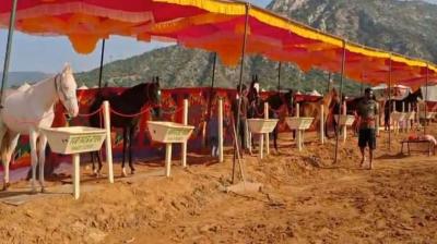पुष्कर पशु मेला में एयर कंडीशन वाहनों से पहुंच रहे ब्रिकी योग्य घोड़े