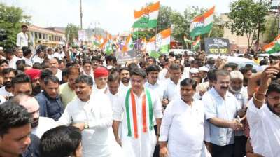 जयपुर में कांग्रेस का पैदल मार्च, गहलोत के साथ पायलट, डोटासरा भी उतरे सड़क पर