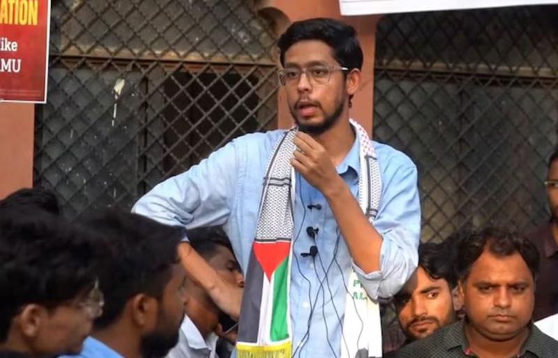 इसी के सम्बंध में फीस बढ़ोत्तरी आदि की मांगों को लेकर बिना अनुमति के धरना दिया जा रहा, जिसमें उक्त धरने के दौरान बाबे सय्यद गेट पर तलहा मन्नान ने अपने आठ से दस साथियों के साथ फिलिस्तीन के समर्थन में भड़काऊ नारेबाजी की जा रही है तथा वहां मौजूद भीड़ को विभिन्न तरीकों से उकसाया जा रहा है। इस नारेबाजी की फोटो व वीडियो सोशल मीडिया पर वायरल हो रही है। जिसमें तलहा फिलिस्तीन का झंडा अपने अंगोछे में लगाये हुए है। जिसके कारण समाज के विभिन्न वर्गों में सौहार्द बने रहने पर प्रतिकूल प्रभाव पड़ेगा। वीडियो व फोटो सोशल मीडिया पर वायरल होने के कारण शांति व्यवस्था प्रभावित हो रही है। अतः तलहा मन्नान व 08-10 अज्ञात साथियों के विरुद्ध अभियोग पंजीकृत कर वैधानिक कार्यवाही करने की कृपा करें।