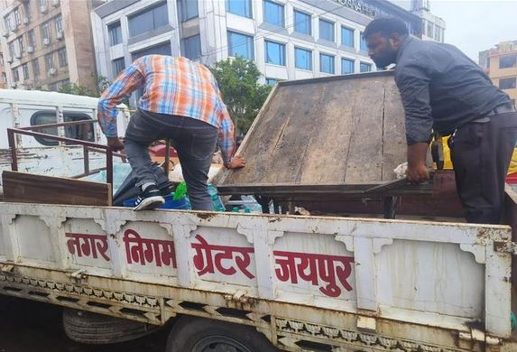 जयपुर। नगर निगम जयपुर आयुक्त डॉ. गौरव सैनी के निर्देषानुसार एवं पूर्व से प्राप्त शिकायतों पर उपायुक्त सतर्कता के नेतृत्व में सतर्कता शाखा की द्वारा नगर निगम जयपुर क्षेत्राधिकार में गांधी नगर मोड़, महेश नगर 80 फिट रोड़ से अस्थाई अतिक्रमण करने वालों के विरुद्ध 1 हजार रुपये का कैरिंग चार्ज वसूल कर 5 केन्टर सामान जब्त किया गया।