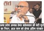भाजपा प्रदेश अध्यक्ष हेमंत खंडेलवाल की पुत्री के निधन से राजनीतिक जगत शोकाकुल